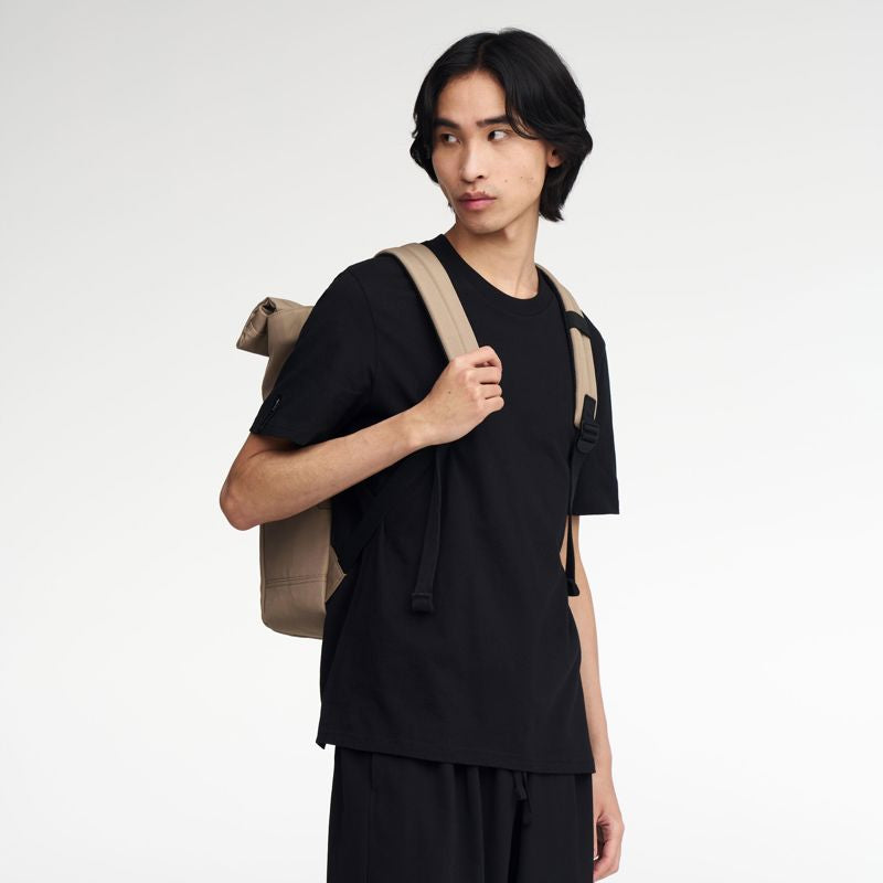 Durable, lightweight, and designed with smart solutions, the Volvo Backpack is the ideal complement to any active lifestyle. It's sleek and easy to carry, with a roll-top using magnets for secure closure. There is a reinforced storage pocket which can accommodate a 14-inch laptop computer. Whether heading for the great outdoors or the office, you'll find spacious storage to keep your gear safe and dry. Made from recycled materials. For extra protection in heavy rain, pair it with the Backpack Rain Cover — made from 100% recycled polyester with a 10,000 mm waterproof rating to keep your belongings completely dry.