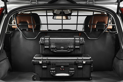 Volvo V60 Dog Guard - Black. A practical protective grille that prevents loads or pets from being thrown forward into the passenger compartment in the event of heavy braking or a collision.